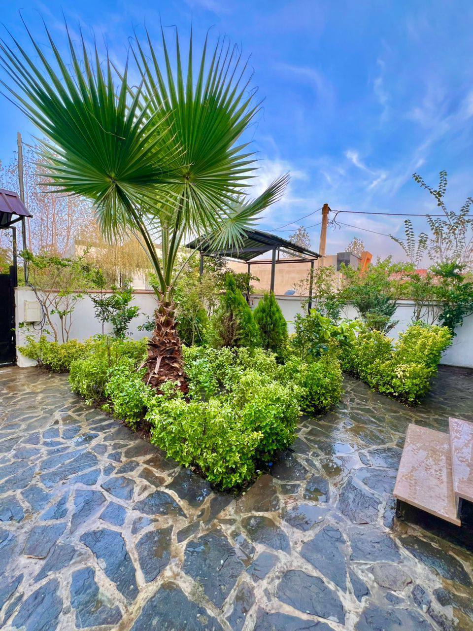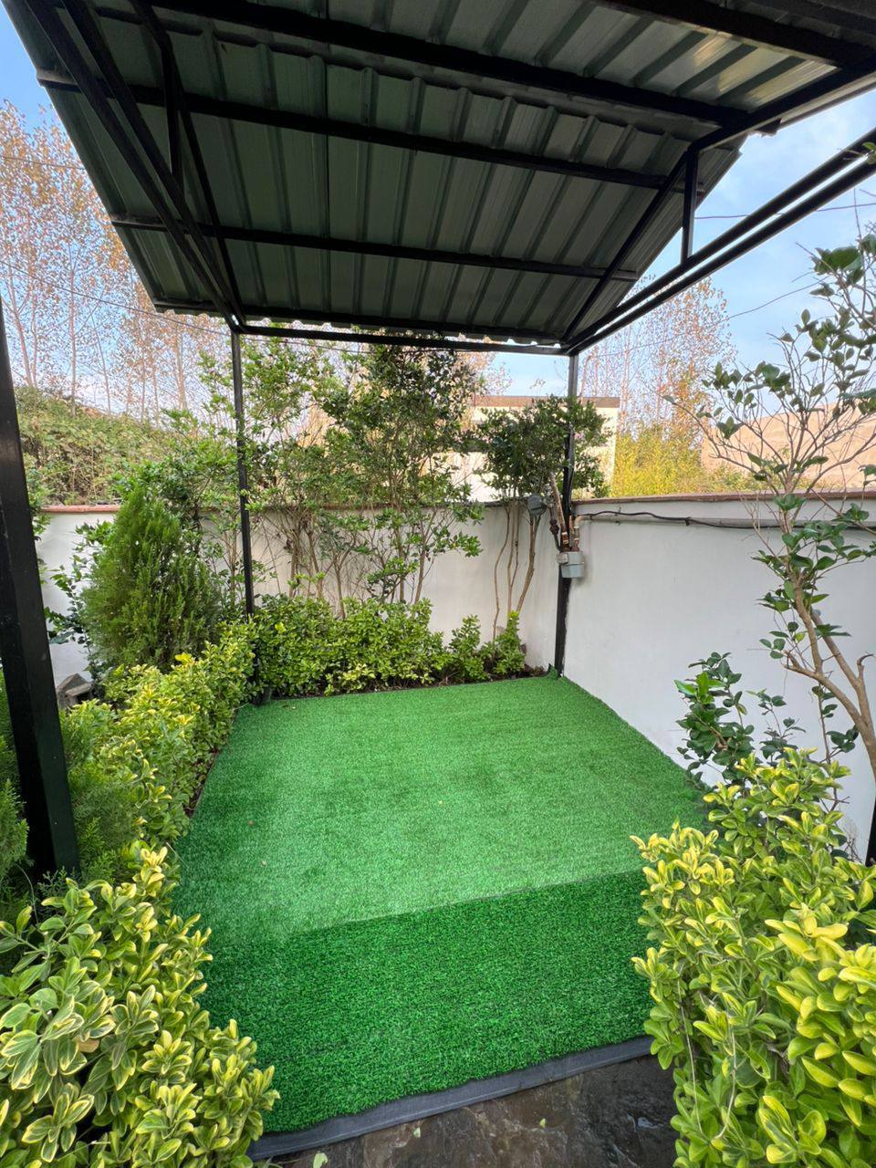 دیوار بلند اختصاصی آب برق گاز کنتور حجمی نصب دارای آلاچیق و کولر گازی ، پمپ و منبع ، پکیج و رادیاتو و حفاظ ها نصب